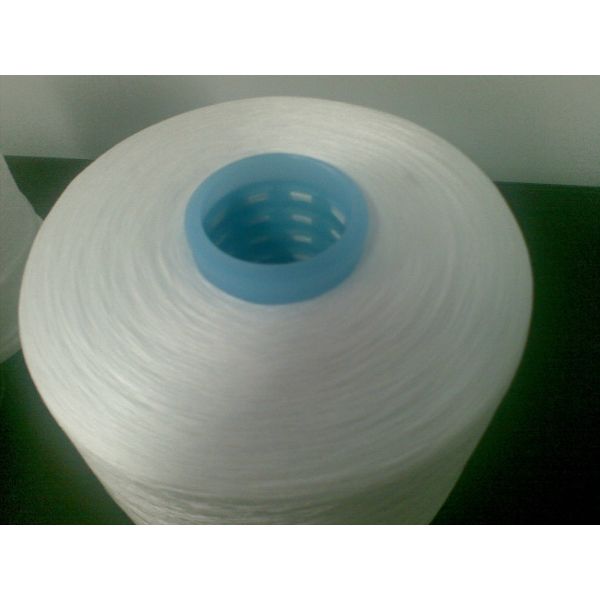 The product is made from high tenacity low elongation stablibized polyester filament covered with long staple cotton.